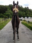 Lite bilder blev det också, några från lösgaloppen och några på promenaden tillbaka ner till stallet, där fick Kaprifol syn på en sabeltandad Charm som gick och betade i Sofias trädgård. FNORK!!! Hihi. Söthäst =)
