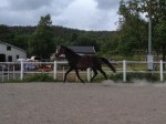 När Kaprifol sprungit färdigt kallade jag in henne och knäppte fast henne igen. Gick sedan med henne så hon varvade ner ordentligt och sedan gjorde vi ett försök med longeringen, och se idag fungerade det igen! Lyssnade bra gjorde hon också!