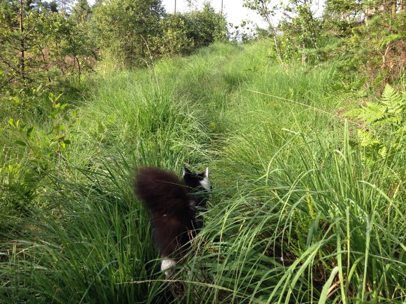 Katla fick komma ut i sovrummet i nya lägenheten och han såg väldigt nyfiken ut och blev ganska snabbt förtjust i de jättestora fönstren. Han fick finna sig i att bli instängd i sovrummet medan vi tömde släpet och bilen på alla grejer och även när vi sedan åkte till stallet för att lämna tillbaka släpet. Vi det laget hade klockan blivit tio ungefär.