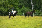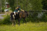 Hästarna verkade inte vara trötta sen igår utan skrittade på med god fart. Vid ett tillfälle fick Kaprifol för sig att hon skulle vända hemåt (vi som tidigare haft omvända problemet..) så där stod vi en stund och diskuterade saken och vi kom snart på rätt väg igen. Lite trav blev det också och det kändes riktigt bra! Börjar vänja mig vid hennes sjumilakliv nu. =)