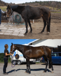 Fyra månader har det gått nu sen jag hämtade hem min lilla sparv. Förutom att Kaprifol har växt på höjden tycker jag att hon har mognat avsevärt på den här tiden, både i sitt utseende men också i sitt beteende och sätt. Lite bebis är hon ju fortfarande såklart, men inte lika hjälplös som förut! Hon står lite stabilare också, i takt med att hon har växt och musklat sig en aning har hon rätat upp sig lite (jämför speciellt bilderna på hennes vänstra sida). Säkerligen både tack vare mer muskler men också rätt verkning av hovarna.