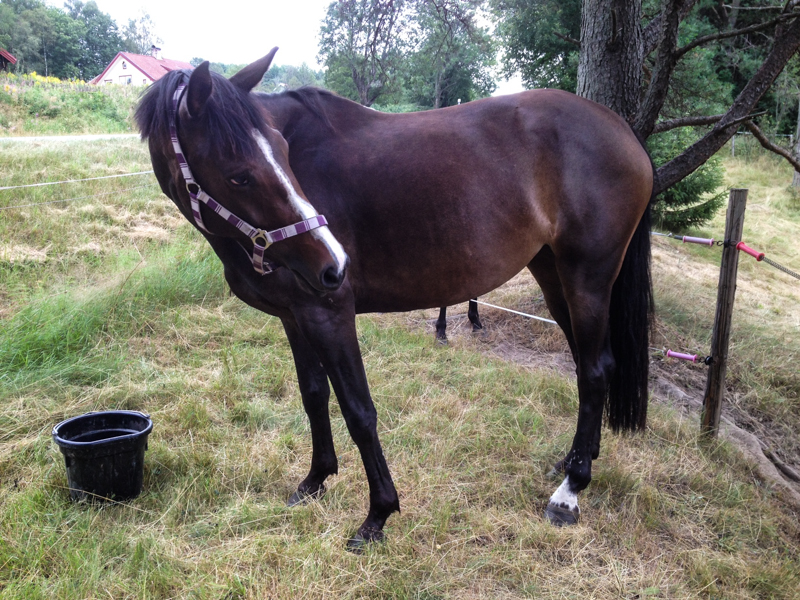 Ja det händer ju inte så mycket på hästfronten just nu, men jag var hos Kaprifol idag också såklart. Passade på att åka förbi henne innan jag hämtade Axel vid flyget! Hon fick lite mineraler och så kollade jag över henne ordentligt, lyfte lite hovar mm. Hon hade ett fult insektsbett på ena bogen idag, men annars verkar det inte vara mycket småkryp. Förutom en himla massa myror precis vid grinden, men de kan man ju enkelt akta sig för.