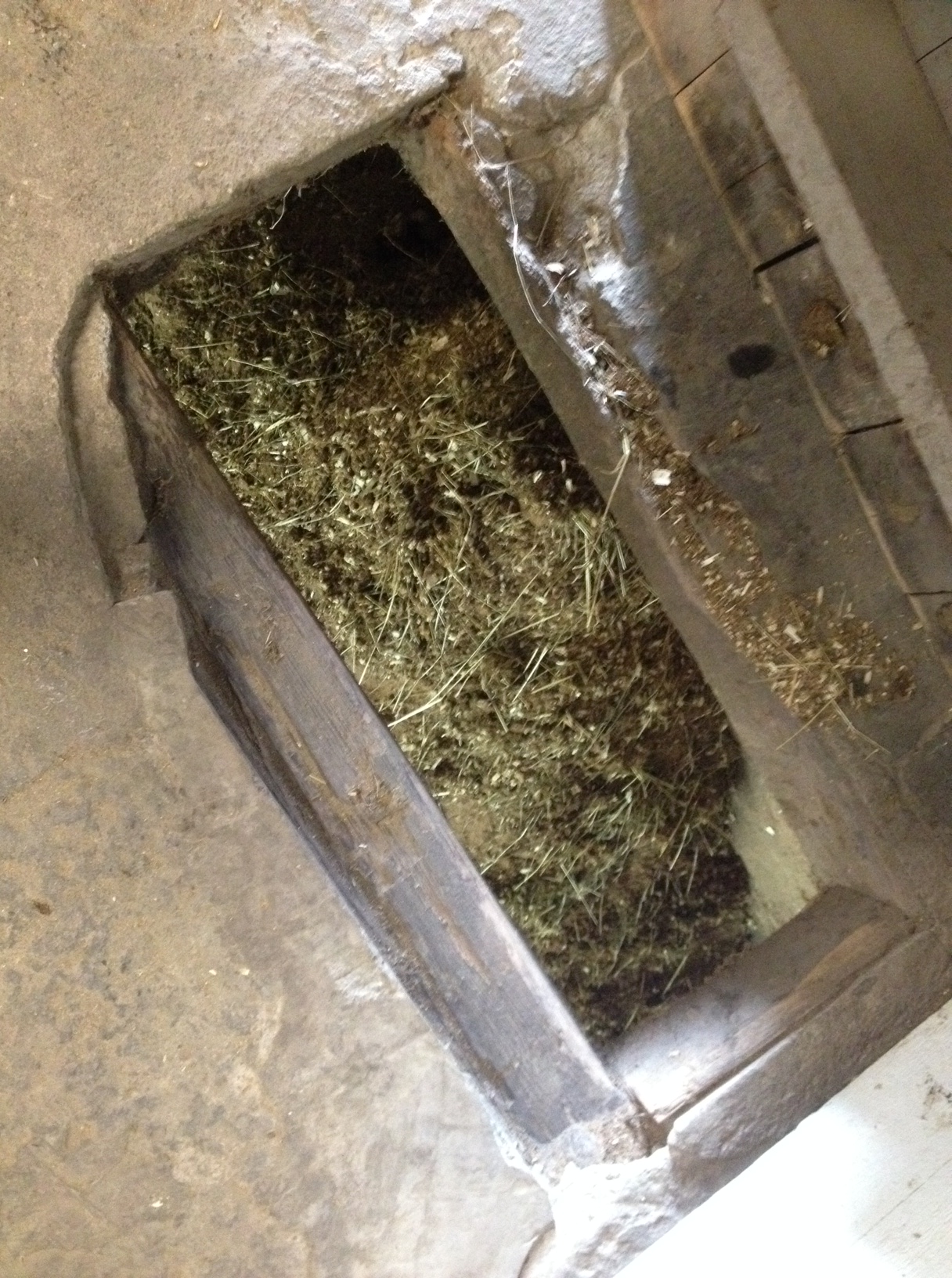 Gödselstacken! Inte så tokigt att slippa gå ut i ösregn, snöstorm eller lera upp till knäna för att tömma skottkärran mitt i vintern! Bara att öppna luckan!
