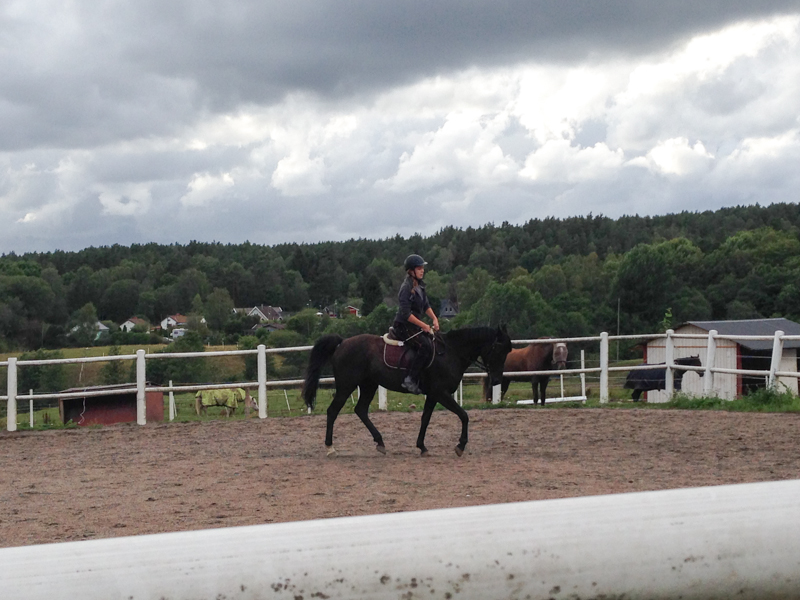 Detta är helt klart den finaste sommarhagen, den ligger också ännu närmare stallet än de andra hagarna. Här ska de förhoppningsvis kunna gå tills Alice kommer om nitton dagar, då börjar vi om i den första sommarhagen, ”Huset-hagen”, som Kaprifol gick i de allra första dagarna när hon kom. Där har det växt riktigt fint med gräs nu! Efter det kommer troligtvis hästarna flytta upp till vinterhagarna uppe vid stallet.