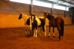 Jag, Linda och Saga åkte till hagen och borstade hästarna innan vi traskade bort mot ridhuset. Vi mötte även upp Michaela och hennes två hästar på vägen, som också skulle med och löshoppa.