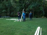 Eftermiddagen gick åt till vårt strategiarbete där vi blev indelade i elva grupper som fick sitta och diskutera frågor om SPs och CBIs kommande treårsplan. När klockan slog fem fick vi vara nöjda för dagen, då blev vi nämligen hämtade och medtagna till en fotbollsplan i närheten. Dags för katapultbygge! Även här blev vi indelade i elva grupper och med hjälp av rep, cykelslangar, spik, hammare, såg, kniv och några brädor skulle varje grupp bygga en fungerande katapult. Vi hade endast 50min på oss och vi fick inte provskjuta med något försmål innan tävlingen började.