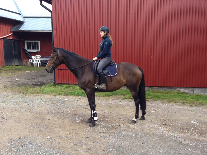 När vi var tillbaka i stallet fick Kaprifol bli av med utrustningen och jag tog i stället in Alice från hagen. Hon var dock lite arg över att vi varit borta så länge så det gick inte riktigt att rida henne, hehe. Jag red runt hagarna och jag tror inte hon tog med än tio skrittsteg på hela runda, hon bara travade på tvären och gick sin ”piaff-skritt”. Dumma häst, men jag kan inte göra så mycket annat än att skratta åt henne. Vi tar nya tag i morgon i stället, då får Kaprifol vila. På söndag blir det nog denna nya favoritrundan med båda hästarna och syrran! Kanske till och med en galopp på galoppbanan? Får se, får se!