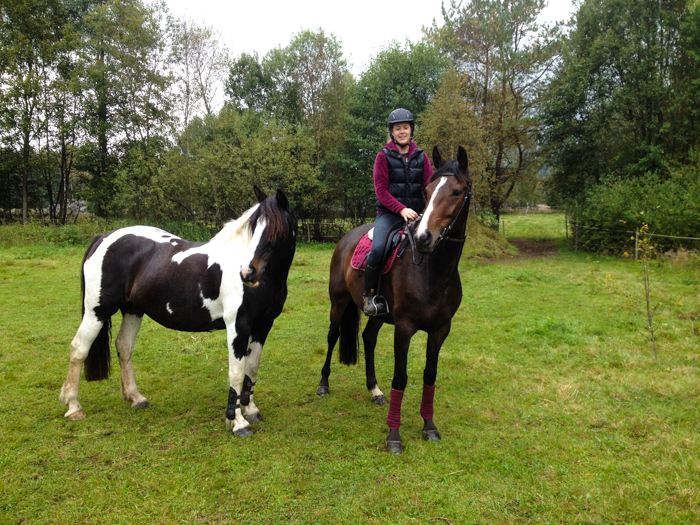När jag var nöjd med pysslet gick vi på en liten promenad, jag och hästarna. Vi gick ner till en av sommarhagarna, den med några stockar och medan Alice fick leta lite gräs gick jag och Kaprifol runt lite samt travhoppade två av stockarna. Det gick prima, hon hoppade stort och glatt så snart får vi allt göra ett nytt försök med mig på. Sist var hon ju minst sagt lite distraherad av annat. Ganska så snart gick vi tillbaka upp mot stallet, men några enstaka gräspauser. En riktigt mysdag helt enkelt =)