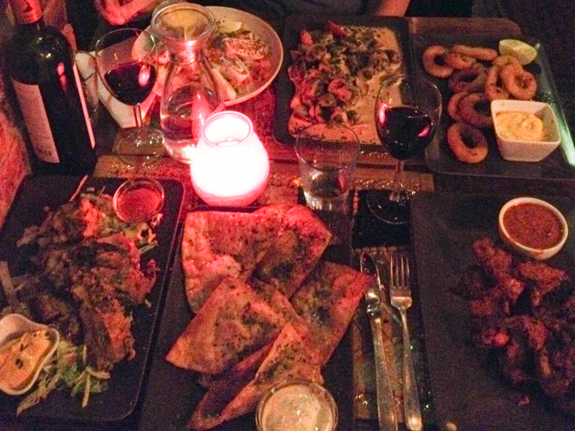 Mina favorit var kycklingvingarna, champinjonerna och bläckfiskringarna. Även vitlöksbröden och laxrullarna var goda, medan den spanska omeletten var lite tråkig.