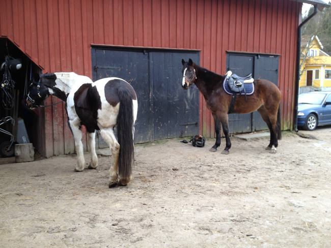 Det var någon enstaka plusgrad ute och frisk luft så vi passade på att göra i ordning hästarna utomhus.