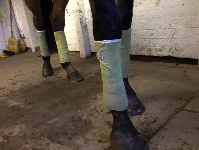 Jag var i stallet ganska tidigt, strax efter tio ungefär och jag började då med att fixa mockningen och tog sedan in Kaprifol och gjorde iordning henne för lite ridning. Hon fick träna lite extra på att stå stilla idag, jag lindade nämligen benen och tvättade hovarna lite. Lite tråkigt att stå still, men det gick hyfsat.