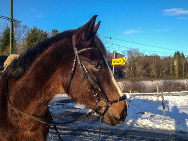 Båda hästarna fick ordentligt med tid på sig att vakna upp, jag passade på att fixa stallsysslorna och borsta de båda lite ordentligt. När de var pigga fick de gå ut i hagen igen.