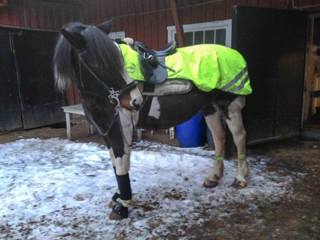 Alice kändes fräsch och skrittade på fint. Vi hann dessutom tillbaka till stallet innan det var helt kolsvart, då var klockan sex. Känns att vi närmar oss våren!