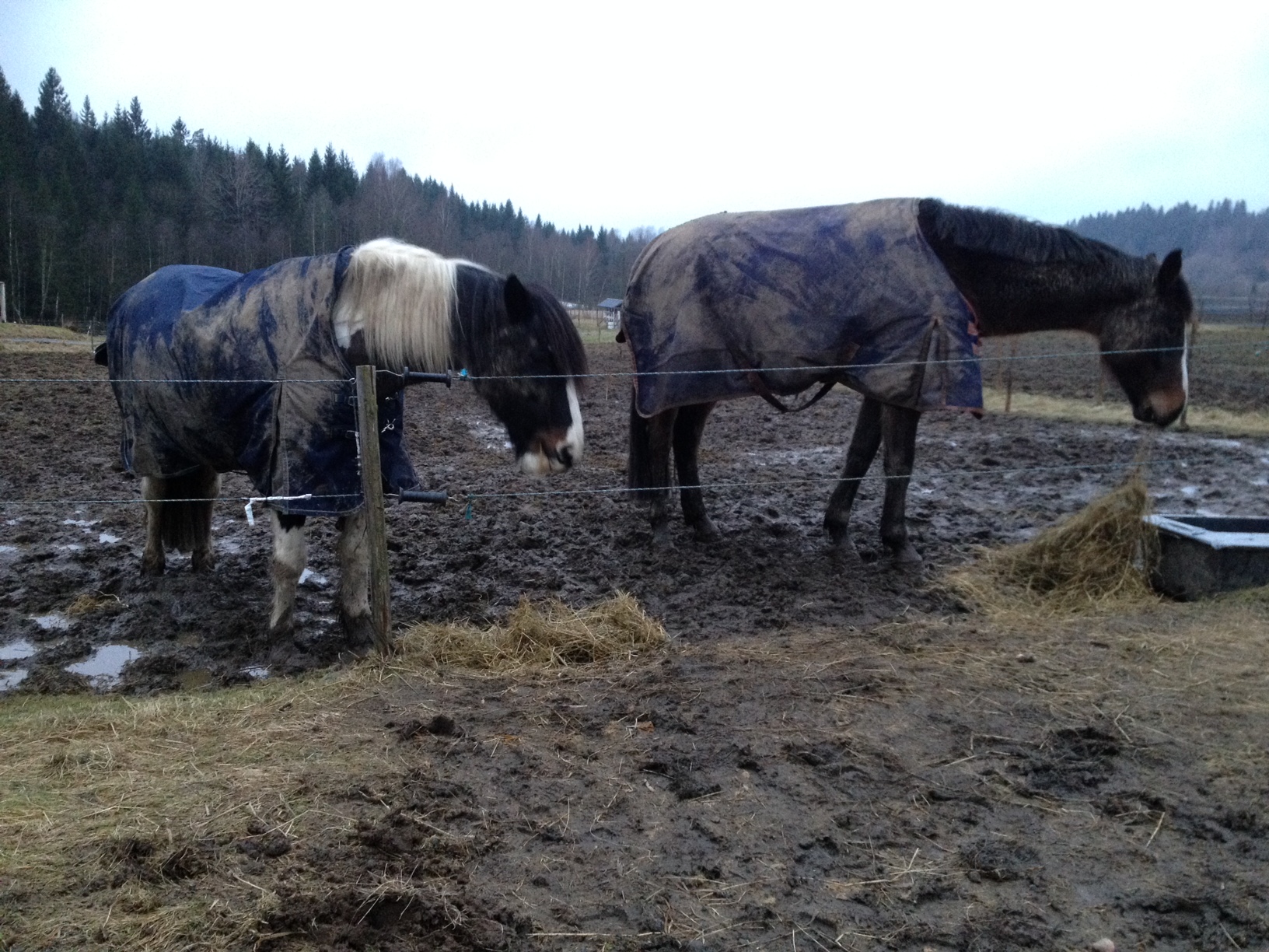 Ja det finns ju helt klart nackdelar med att våren är på intåg också. Hagen har återigen förvandlats till en lervälling och är inte alls rolig för hästarna att stå i hela dagarna. Hoppas att regnet håller sig borta och det torkar upp, i så fall dröjer det förhoppningsvis inte så lång tid tills vi kan släppa ut hästarna i de större finare hagarna.