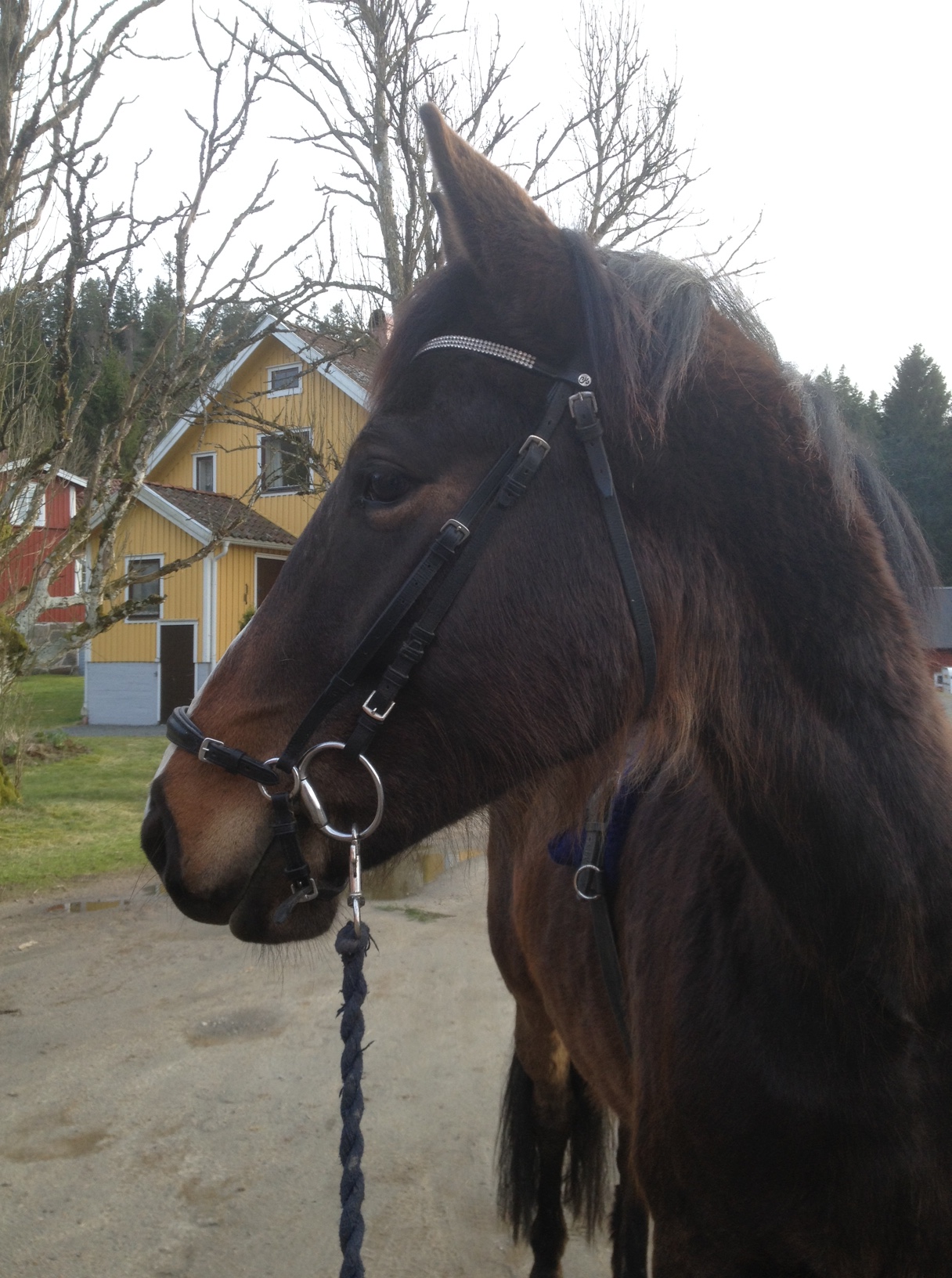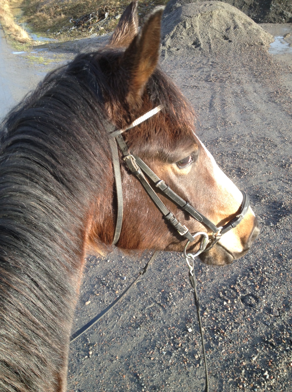 Vid det här laget behöver jag väl knappast nämna att en viss brun häst samlat på sig en hel del energi under tiden jag har varit borta. Jag hade inte ens i mina tankar att rida henne utan hon fick spralla av sig på linan idag. Bus lyste ur ögonen och hon visste knappt var hon skulle ta vägen. Vi höll till i gläntan och när jag tyckte att det räckte gick vi bort därifrån och jag hörde en bil komma uppifrån grusvägen så jag stannade och skulle låta den köra förbi innan vi också gick ut på vägen. Jag lovar er att även Kaprifol hörde den, säkerligen innan jag gjorde det dessutom, men ändå var hon tvungen att dansa iväg, hoppa på stället och precis när bilen skulle köra förbi (vi stod en bit in på en gräsväg, säkert tio meter från bilen) så ställde hon sig ytterst graciöst och praktfullt upp på bakbenen och visade sin lurviga mage för en bilist med ytterst uppspärrade ögon. När bilen rullat förbi i snigelfart gick Kaprifol ner på alla fyra igen, ruskade lite på sig och tittade på mig; ”Sådärja, ska vi gå vidare?” Det kom en bil till två minuter senare och då lunkade hon fram som en gammal ridskolehäst medan bilen körde om oss på den smala grusvägen runt stallet.