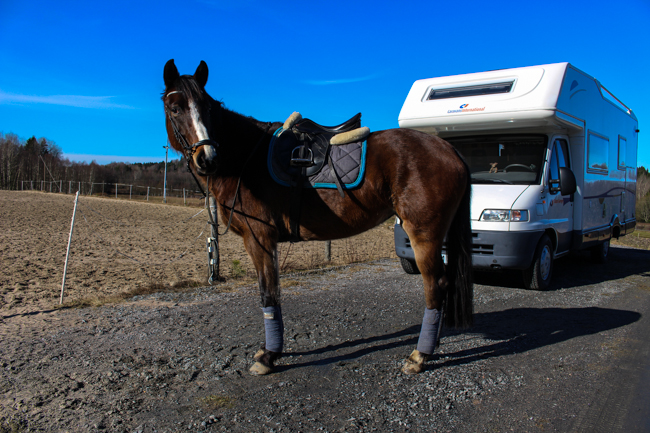 I traven handlar det mycket om att hitta hennes balans. I vänster varv går det bra, men i höger varv har hon lite sämre balans och hon ”knuffar” över både mig och sadeln på vänster sida vilket gör att när vi ska svänga till höger blir det lite pannkaka utav det hela och vi går åt andra hållet i stället! Jag vill då gärna leda med höger tygel för att visa vägen, men då blir det hela bara ännu värre eftersom hon då svänger halsen, kör ut vänsterbogen och fortsätter rakt åt vänster. När jag i stället endast svängde för vänstra skänkel och höll henne rak på ytter tygel gick vi precis dit vi skulle. Jätteenkelt, och jag vet allt det här egentligen, men tydligen så ska det vara så svårt att göra rätt just när det behövs. =)