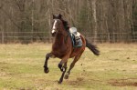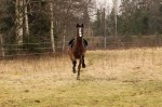 Efter lite spänd skritt och hoppig trav i sommarhagen hoppade jag av och släppte odjuret löst, hon hade verkat så himla lugn och fin i stallet så lämnade longerlinan där uppe. Lika bra det kanske, nu kunde jag ta ett steg tillbaka och se på när hon rastade av sig själv. Stigbyglarna upphissade och tyglarna uppknutna, sen ett ”varsågod” och Kaprifol gjorde en rivstart i gräset.