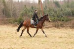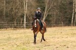 Kaprifol däremot stod på alla fyra benen så hon fick bli i ordninggjord för lite tömkörning. Hon var riktigt mysig inne i stallet idag och riktigt duktig på tömkörningen. Det är väl inte helt optimalt att tömköra i Gläntan då det är lite störande grenar och vattenpölar lite här och var, men det funkar när jag inte riktigt orkar gå upp till ridhuset ”bara” för att tömköra eller longera. I slutet gick hon riktigt fint faktiskt, hoppas att jag kan få henne lika fin när jag rider henne i morgon. Med tanke på att jag rider bättre än jag tömkör borde det ju inte vara så svårt, men det funkar ju inte alltid så tyvärr.
