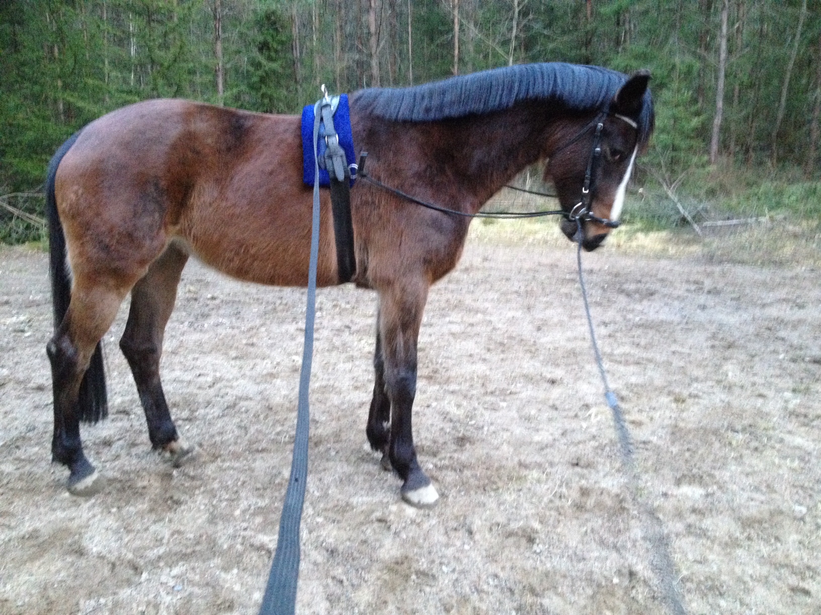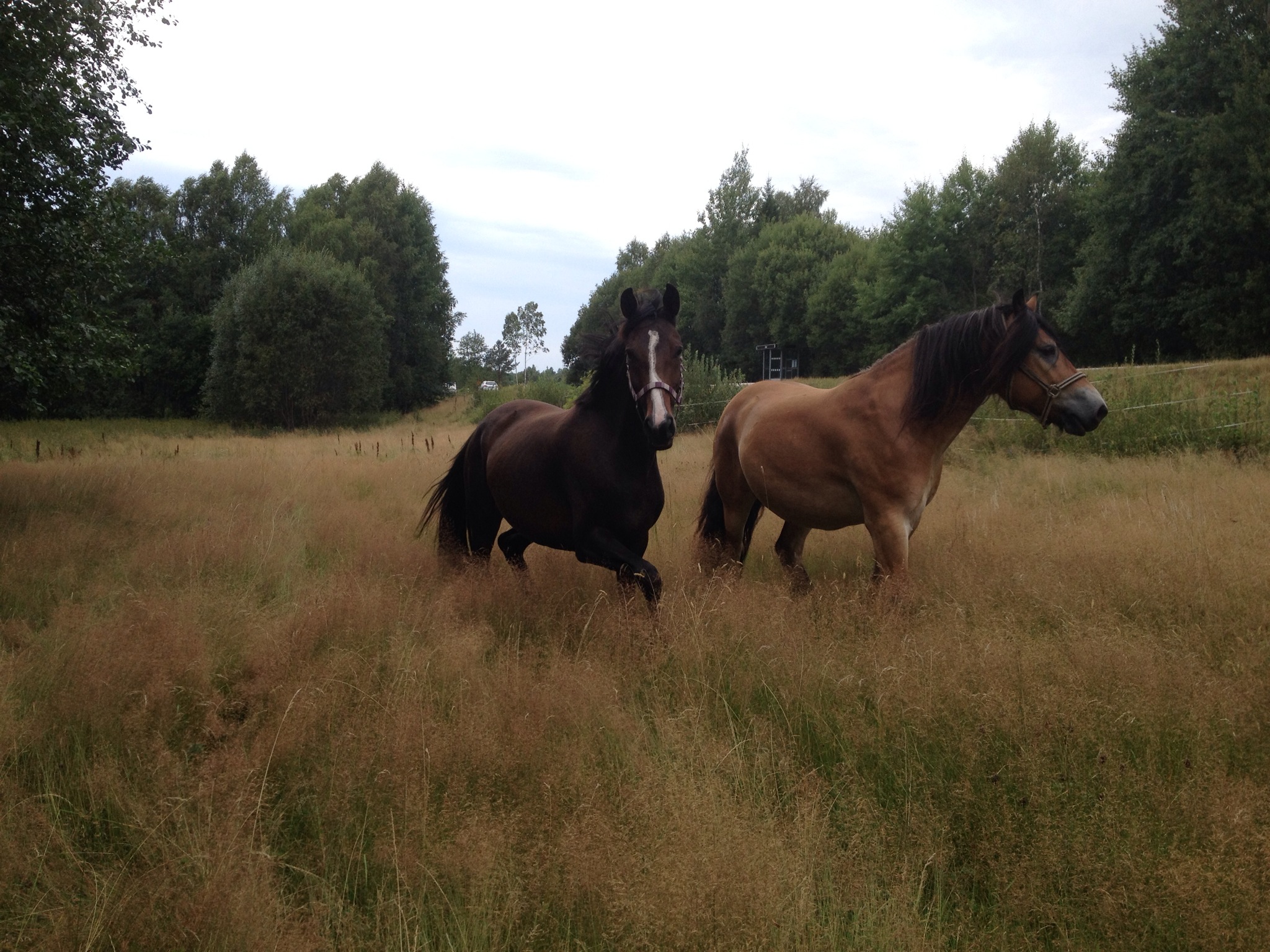 Även Kaprifol fick bli lite borstad innan jag tog på henne tömkörningsutrustningen och gick ner till Gläntan. Hon var trött idag, Camilla berättade att hon legat och sovit i hagen en lång stund tidigare, men hon var ändå riktigt, riktigt trevlig på tömmen. Det var stor skillnad mot förra gången jag tömkörde henne och idag hade jag för första gången lite ”problem” med att hon faktiskt krullade ihop sig lite i halsen, framförallt i skritten, vilket aldrig har hänt förut. Kanske håller den där underhalsen faktiskt på att försvinna! Det ska bli väldigt roligt att se om vi kan vara lika duktiga på dressyrträningen i morgon, sen passar det nog ganska bra med den där minivilan nästa vecka, jag tycker att hon har varit lite tröttare den sista tiden. Fällningstider ihop med att hon kanske växer lite igen?