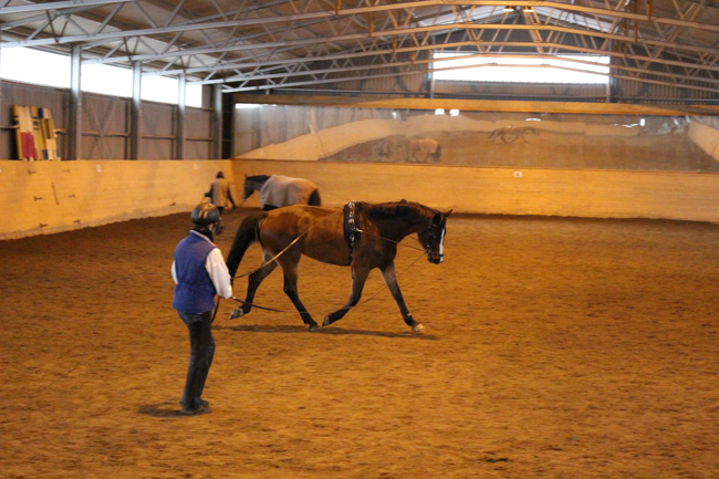 I februari tränade vi dressyr för Karolina för första gången, för det räcker ju inte med att Kaprifol jobbar fint i töm utan helst ska hon ju göra det när jag rider också!