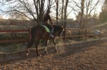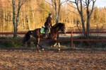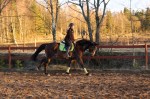 Axel hängde med upp till stallet idag och vi tog med båda hästarna till ridbanan uppe vid ridhuset där jag red Kaprifol lite och försökte hitta samma känsla som vi fick på träningen i onsdags. Det gick ganska så bra faktiskt, efter en stund hittade vi lite rätt och även om det inte kändes riktigt lika bra som på träningen var det helt åt rätt håll i alla fall! Kaprifol var lite småseg idag vilket bidrog lite till att jag inte riktigt fick till det, men ändå, vi hittade dit utan tränarhjälp i alla fall. Haha, inga stora krav här inte.