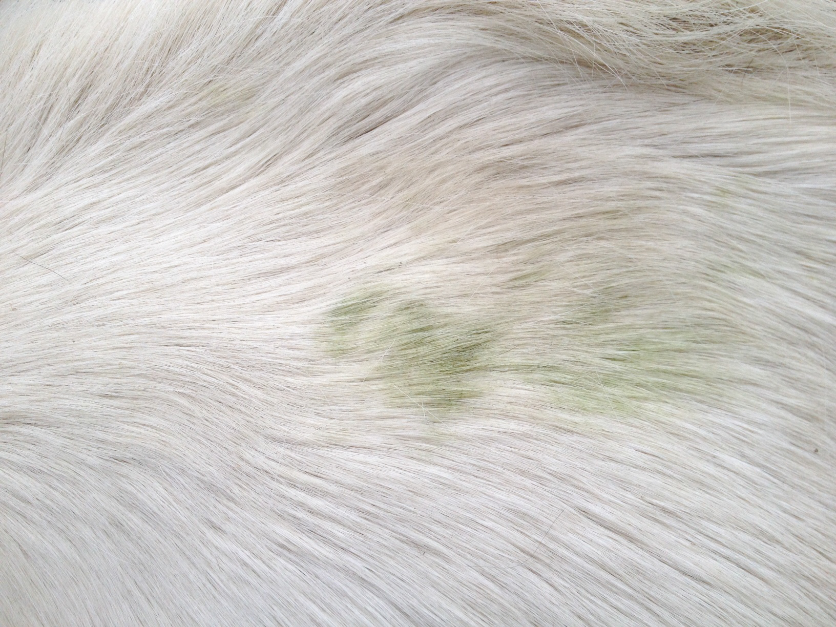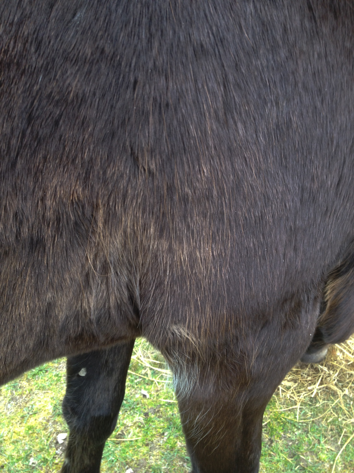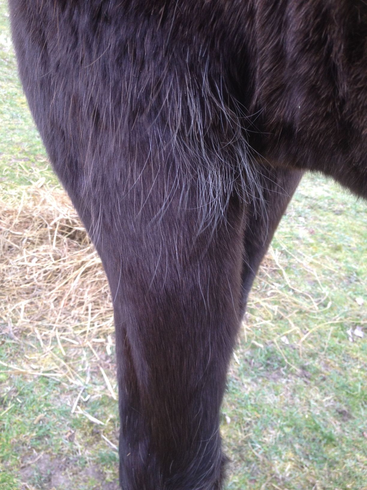 Mellan frambenen, vid armbågen och insida lår har hon hela vintern haft långa nästan vita hår, men de är också på väg bort nu.