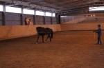 För dagen hade vi tömkörning med Barbro inplanerat och jag behöver väl knappt säga längre att Kaprifol var riktigt duktig och fin! Hon var dock lite trött i musklerna sedan galoppträningen igår, men det är ju inte så konstigt. Hon jobbade på duktigt trots detta och idag blev hon tömkörd över bommar för första gången med Barbro samt att de nosade lite på sidoförflyttningar i skritt, det ni!
