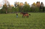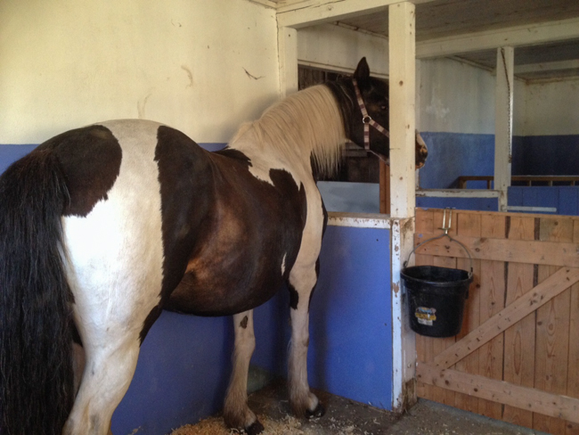 När Esmée var klar fick Kaprifol komma in i boxen för första gången. Det gick faktiskt bra att komma in dit, trots att Kaprifol nästan slår i huvudet över stalldörren och definitivt inte kan vända sig om i gången dit, men i boxen var det rätt rymligt faktiskt. Men jösses vad STOR hon har blivit på de här senaste veckorna. Visst har hon lite extra runt magen men det är inte det jag menar, hon har breddat sig, säkert växt mer och lixom fyllt ut riktigt ordentligt. Jag som inte skulle ha en sån stor häst, hon var ju så liten och söt när jag hämtade henne… 🙂