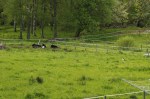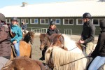 Esmée fick komma in först och krubban var full av dagens ranson kraftfoder. Hon har tidigare varit inne i boxen och hon är mer bekväm med det för varje gång. Hon blev även lite borstad och sen gick vi en liten runda på gården och tittade på farliga saker och tog en tuva gräs här och där.