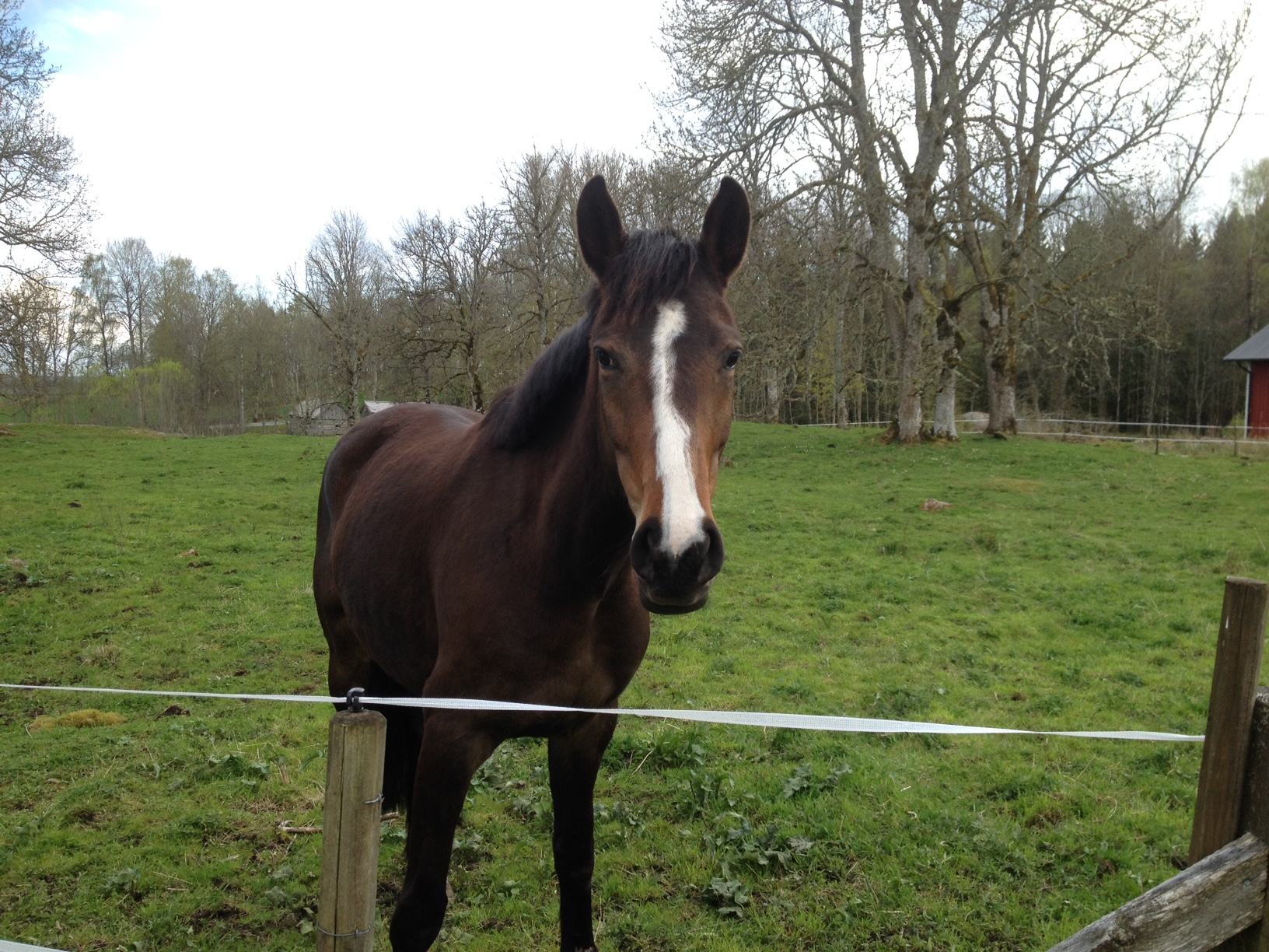 Igår sken solen över gården när jag kom hem och jag gick ganska så direkt ut till hästarna. Planen var att rida Alice barbacka med Kaprifol som handhäst så jag gjorde ordning båda lite snabbt och satt upp. Jag red en liten runda på dryga tre kilometer som tog oss ner till sjön och upp till nya kyrkan via fina grusvägar. Hästarna var pigga och nyfikna men höll sig i skinnet! Trots att även Alice hade bra tempo i skritten fick jag bromsa Kaprifol ganska ofta, hon har för långa ben! Men det gick jättebra, vi travade ett par gånger men skrittade annars hela vägen.