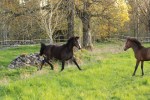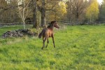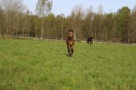Idag har jag även pysslat lite mer med hästarna nu när de landat lite. Först fick Esmée komma ut och få lite kraftfoder samt bli lite borstad. Lite otäckt men hon skötte sig ändå bra. Kaprifol fick också bli lite snabbt borstad innan jag och Axel tog med oss henne på en promenad in i skogen. Alice var lugn medan Esmée blev lite tokig när vi gick, hehe. Bra sällskapshäst jag lånat va? Hon höll sig dock i hagen hos Alice och lugnade sig lite när vi kom utom synhåll. Blir nog bra med lite träning!