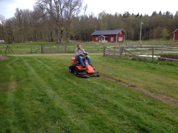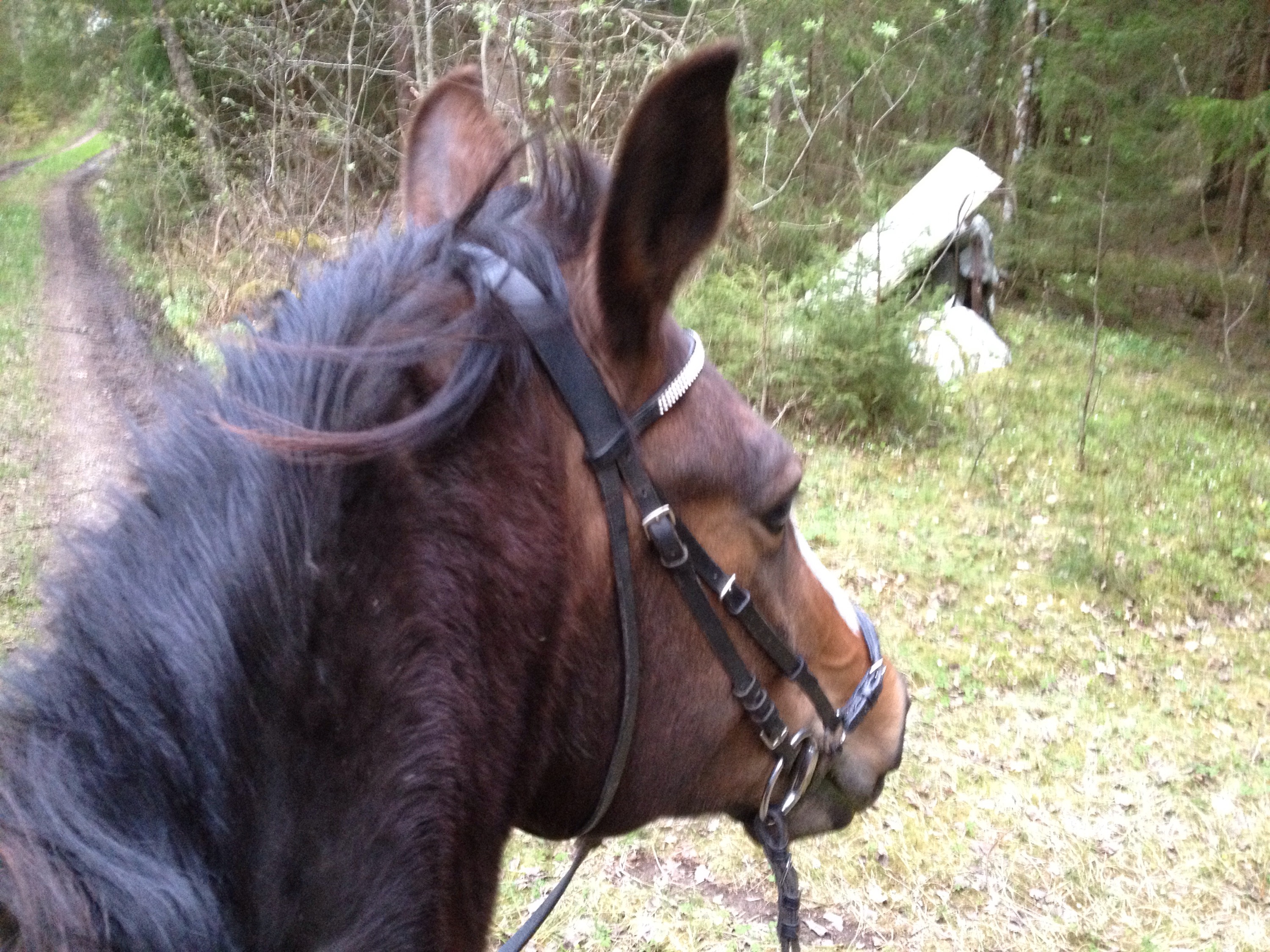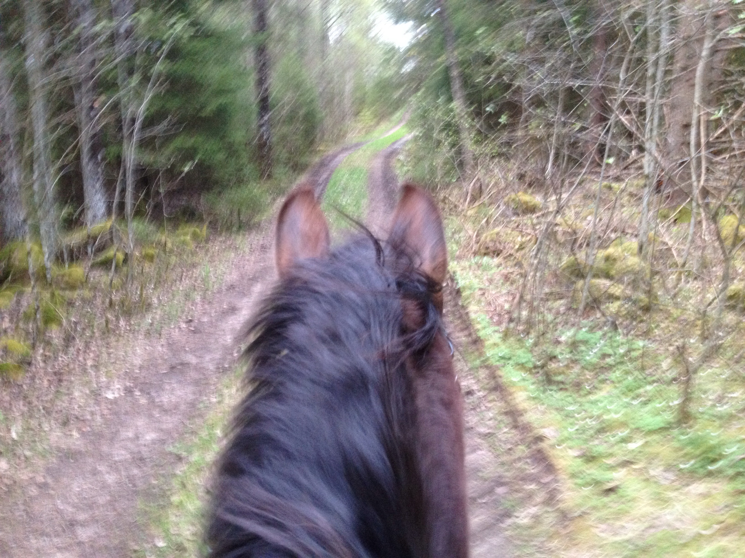 När de åkt hem till sig var klockan strax efter åtta och Axel satte igång med att provköra gräsklipparen för första gången och jag gjorde i ordning Kaprifol för en ridtur! Esmée var lite lugnare idag när vi gav oss iväg och Kaprifol skötte sig exemplariskt på vår första ensamma tur i Ornunga! Jag red bara in på skogsvägen och tillbaka, den kändes lagom för ett första försök. Förutom en tvärnit och ett bocksprång när ett rådjur hoppade upp framför oss gick det utan incidenter. På bortavägen skrittade och travade vi och på hemvägen tog vi en låång helt underbar galopp! Fina härliga häst! Lite spänd var hon och det blåste bra, så jag är supernöjd över att det fick så bra. Nu ska hon bara slappna av ytterligare så hon slutar skita tre gånger i kvarten, sen kan vi bege oss ner på grusvägarna!