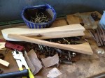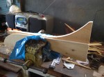 Jag var inte så duktig på att fota idag, och de foton som blev visar mest sadelhängarna från udda vinklar, men ni förstår nog när ni får se det färdiga resultatet! På sista bilden kan man se hur själva stommen ser ut, där sadeln ligger, den är dock uppochner eftersom vi just limmat den. När limmet torkat ska den sågas lite mer också.