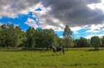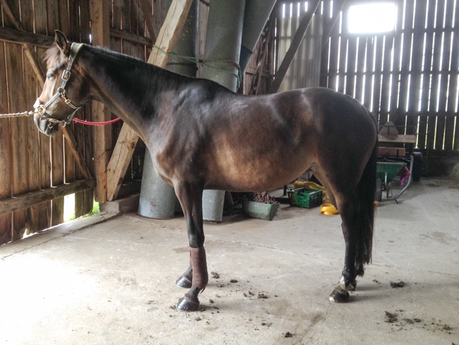 I går när jag gick ut i hagen möttes jag som vanligt av Esmée men Kaprifol lyfte endast på huvudet och tittade på mig med en lång blick. Hon fortsatte inte äta utan stirrade på mig tills jag kom fram. Hon vilade ena bakbenet och var väldigt ovillig till att röra sig. Jag såg även direkt att benet var väldigt svullet och varmt, främst runt hasleden men även lite ner på benet och runt kotleden. Inga sår. Vi gick långsamt till stallet och hon stödde på benet men hon lyfte det ojämna och släpade det lite i marken.