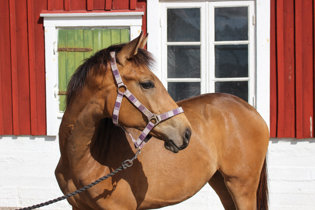 Kaprifol verkar i övrigt väldigt tillfreds med tillvaron och hon är väldigt trevlig att greja med. Hon har lite dåligt tålamod i bland men det blir bättre och bättre. Tidigare har hon inte haft ro alls att stå stilla för att bli borstad utan har gått omkring och skrapat i golvet med hoven nästan direkt. Nu den senaste tiden har hon börjat njuta lite av pysslet och står stilla och fint så länge jag gör något med henne. Om jag går iväg en bit och ”är borta” för länge krafsar hon lite, men inte så mycket. Även idag var hon duktig, så passade på att pyssla lite extra.