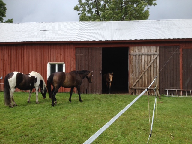 Smörgåstårtorna åts upp i snabb takt och sedan satte vi igång med vår lilla lagtävling. Fyra lag fick göra lite uppdrag och svara på ett par frågor runt om på gården (vi lyckades tajma den enda timmen utan regn!!) och det var riktigt lyckat. Uppdragen bestod exempelvis av att hänga tvätt på tid, kasta vattenballonger, sätta ihop träns, gräsklippar-race, luftgevärsskytte och para ihop bultar.