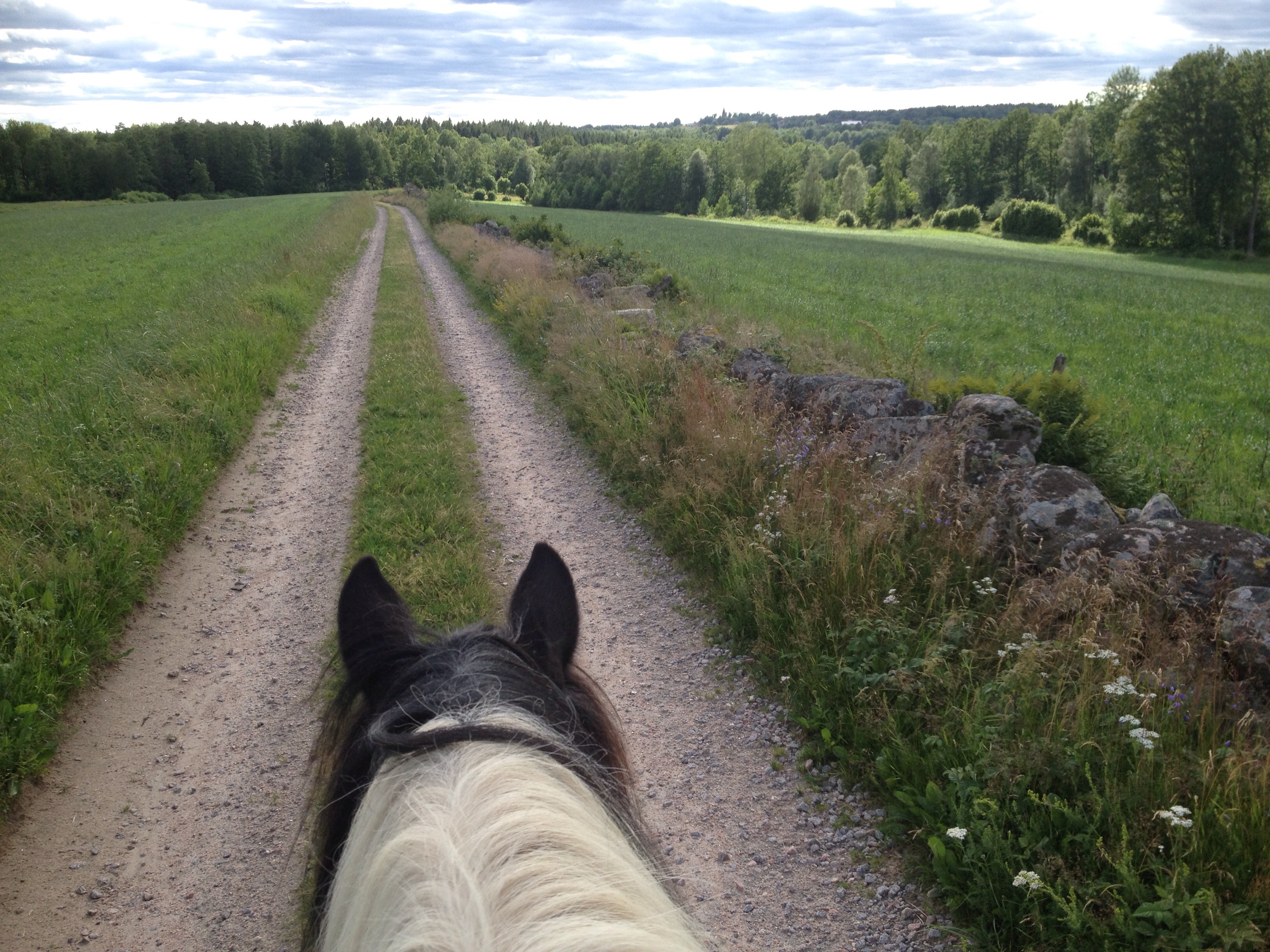 I skrivandes stund har vi precis gett oss av hemifrån för att åka hem till bror och hans familj. Malin fyller år idag och vi alla ska dit och fira såklart! Innan vi åkte skrittade jag Alice en bit med Kaprifol som handhäst, härligt att hon får röra på sig igen! Glad och fräsch är hon också.