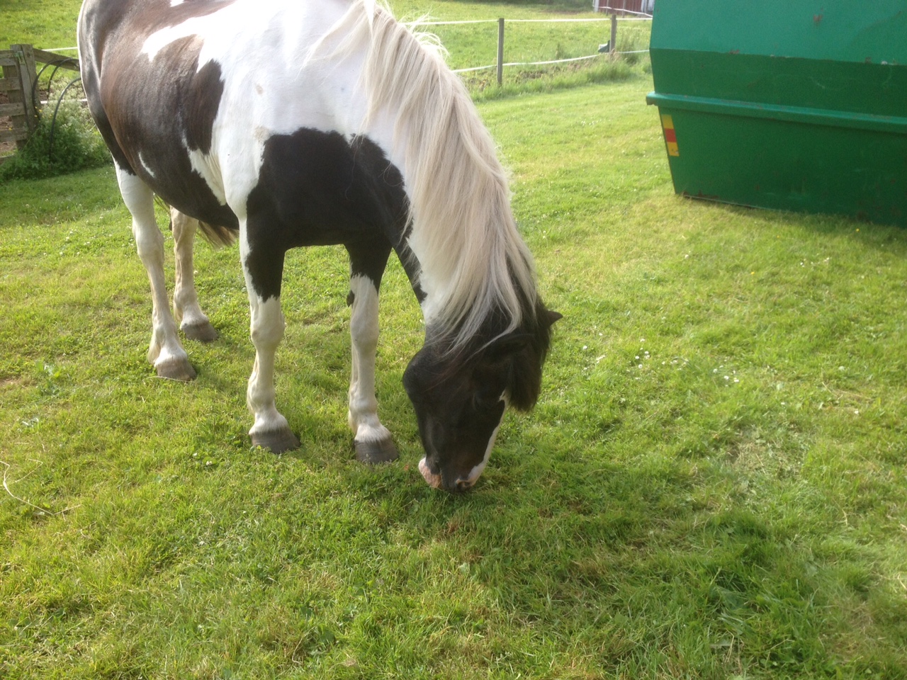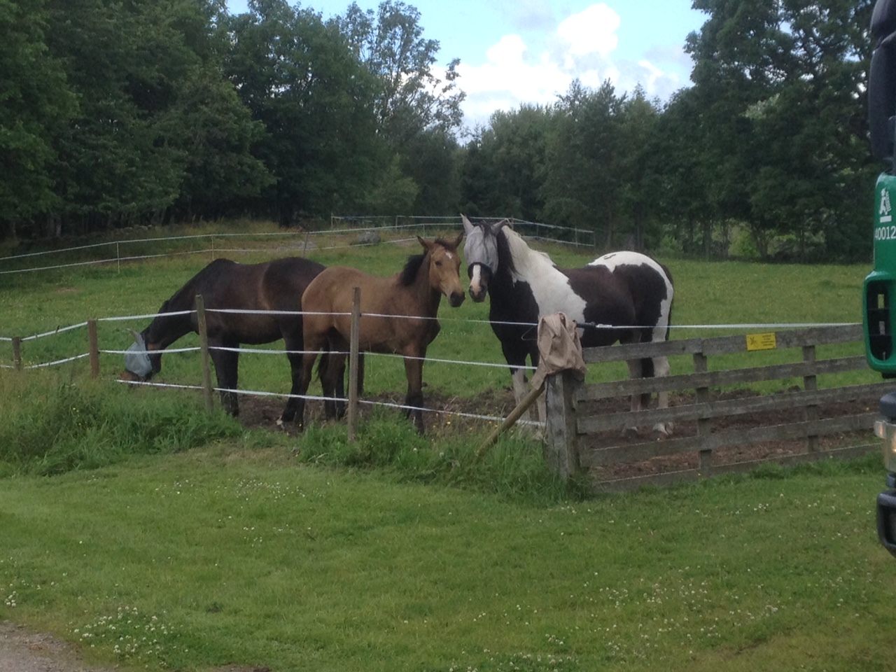 I går hann jag hem efter jobbet precis när containern anlände! Hästarna stod och spanade på det hela och trots att Alice stod knappa fem meter från det hela rörde hon sig inte en centimeter. De andra två gömde sig bakom Alice och sprang i väg lite ett par gånger när containern lät, men de kom snart fram igen för att kika.