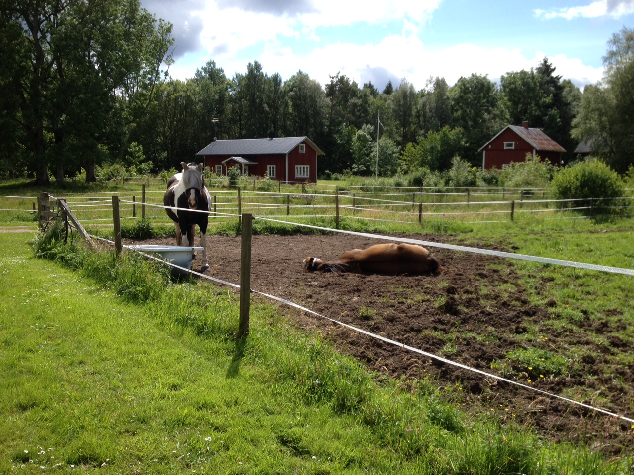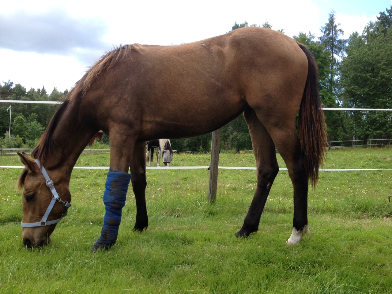 Esmée har även idag fått smaka lite på gröngräset på andra sidan staketet och jag är väldigt lättad över att hon fortfarande tycker om mig trots att jag ”hugger” henne med sprutan varje kväll! I morgon ska hon få sista sprutan och bandaget ska tas av och beroende på hur såret ser ut så får hon antigen ett nytt bandage eller en speciell spray som jag fått utav veterinären.