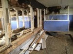 Jag och mamma satte ganska direkt igång med att tömma stalldelen på brädor och det gick ganska snabbt! En del brädor var för långa men eftersom de är i så dåligt skick räckte det med att stampa lite på dem så gick dem av i lagom längder.