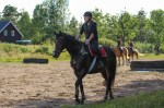 Idag fick hon i alla fall lite motion och extra uppmärksamhet med svanstvätt, oljade hovar, ordentligt rykt och pyssel. Det går absolut ingen nöd på henne, hon trivs med livet som halv-pensionär. Hon är väldigt lugn och avslappnad inne i stallet, är ganska glad i sina korta motionsturer och även om hon skriker lite när jag och Kaprifol är ute på vift tar hon det ganska bra!