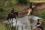 Vid halv niotiden igår kväll kom katten in genom sin lilla lucka och hoppade glatt upp i mitt knä där jag satt i köket. Han var väldigt blöt och jag kom plötsligt ihåg att det skulle regna stora mängder hela natten och fortsätta pöla idag. Det är inte längre så varmt ute på nätterna så jag hade planerat att sätta på hästarna tunna regntäcken, men glömt bort. Tur att katten påminde mig, det var ju inte lite det skulle regna. Himla bra att ha hästarna hemma också, jag drog på mig skor och jacka och var ute i hagen med täckena på mindre än fem minuter. Hästarna kom långt bortifrån när jag ropade (läs: skramlade med en hink) och hade ännu inte hunnit bli speciellt blöta så det var bra tajmat med täckena.