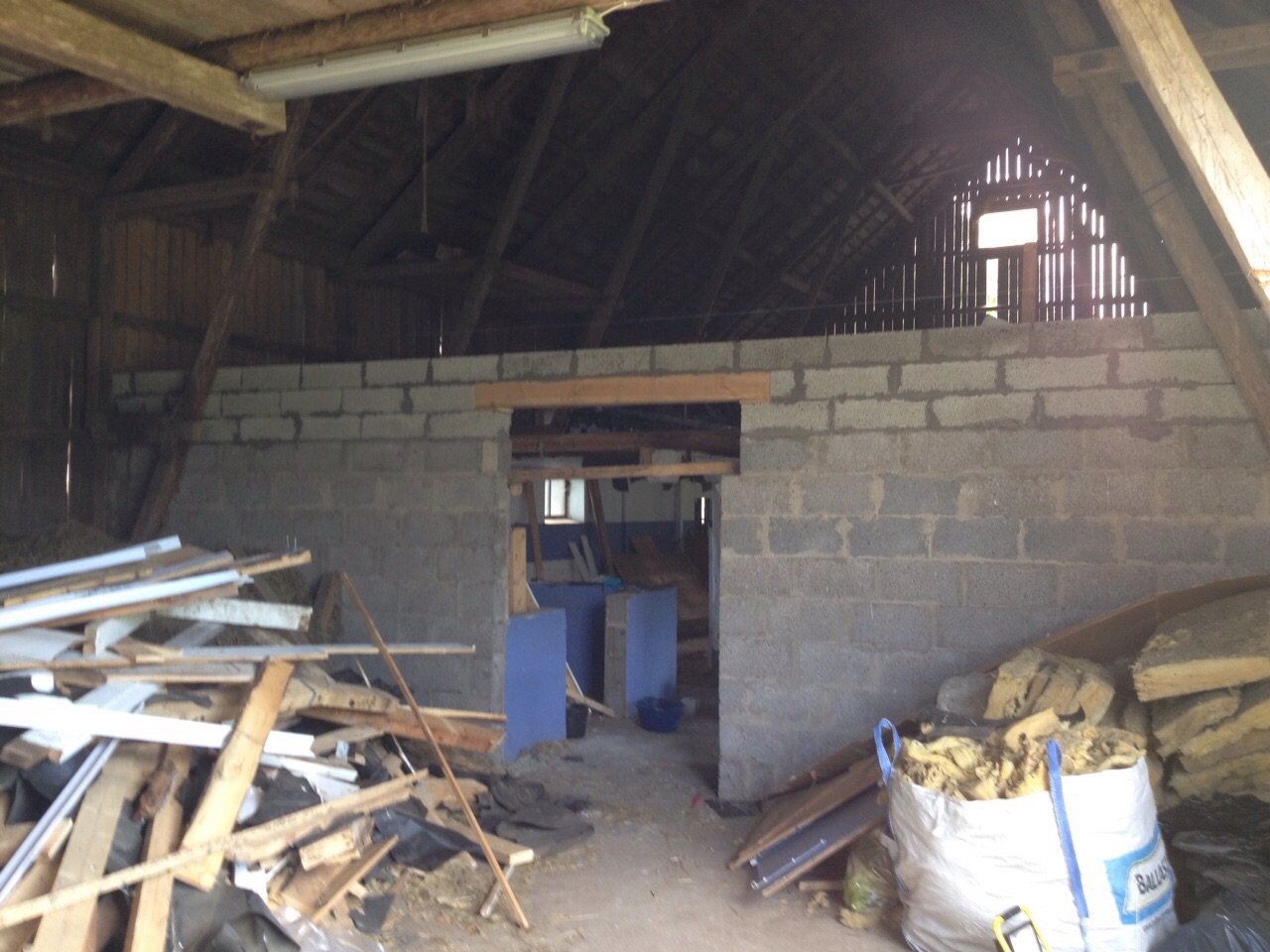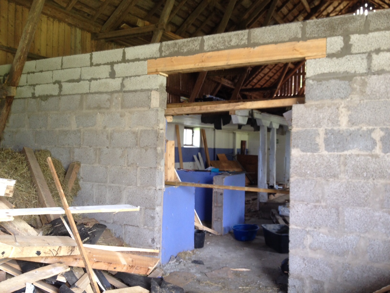 Om ni undrar varför det sticker in en bit lecablock i dörren på höger sida är det för att detta ska sågas bort såsmåningom eftersom vi breddar dörren en aning.