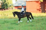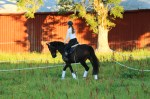 Jag hade en relativt bra känsla under dressyrridningen igår men jag är egentligen inte så nöjd över passet. Underlaget är ju inte det bästa; det lutar en del och är gropigt här och där så det är ju inte den lättaste platsen att rida en unghäst på. Kaprifol lyfte ordentligt på benen och blev snabbt trött, det blev ju även en längre uteritt dagen innan så hon var säkerligen lite matt i kroppen efter det. När jag kikade på bilderna sen efteråt såg jag även att hon var väldigt fipplig med munnen och gapade ofta, vilket jag inte alls hade känslan av under ridningen. Jag provade att rida med ett rakt bett med fasta ringar igår, jag har ridit ut med det ett par gånger och det har känts riktigt bra men hon verkade som sagt inte så förtjust i det under dressyrridningen. Får ge det nån mer chans, annars håller vi oss till det på uteritterna.