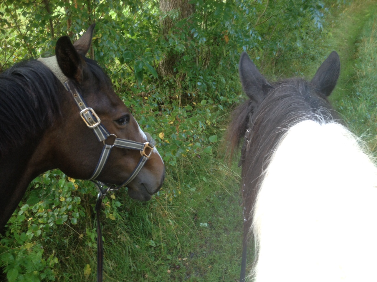 Hästarna var riktigt trevliga att ha med sig idag, de höll samma tempo i skritten nästan hela tiden vilket ju är en väldig fördel när man har den ena som handhäst! Vi skrittade mest men travade även en liten kort sträcka. Kaprifol såg fräsch ut och verkar inte ha någon träningsverk eller liknande efter söndagens långritt!