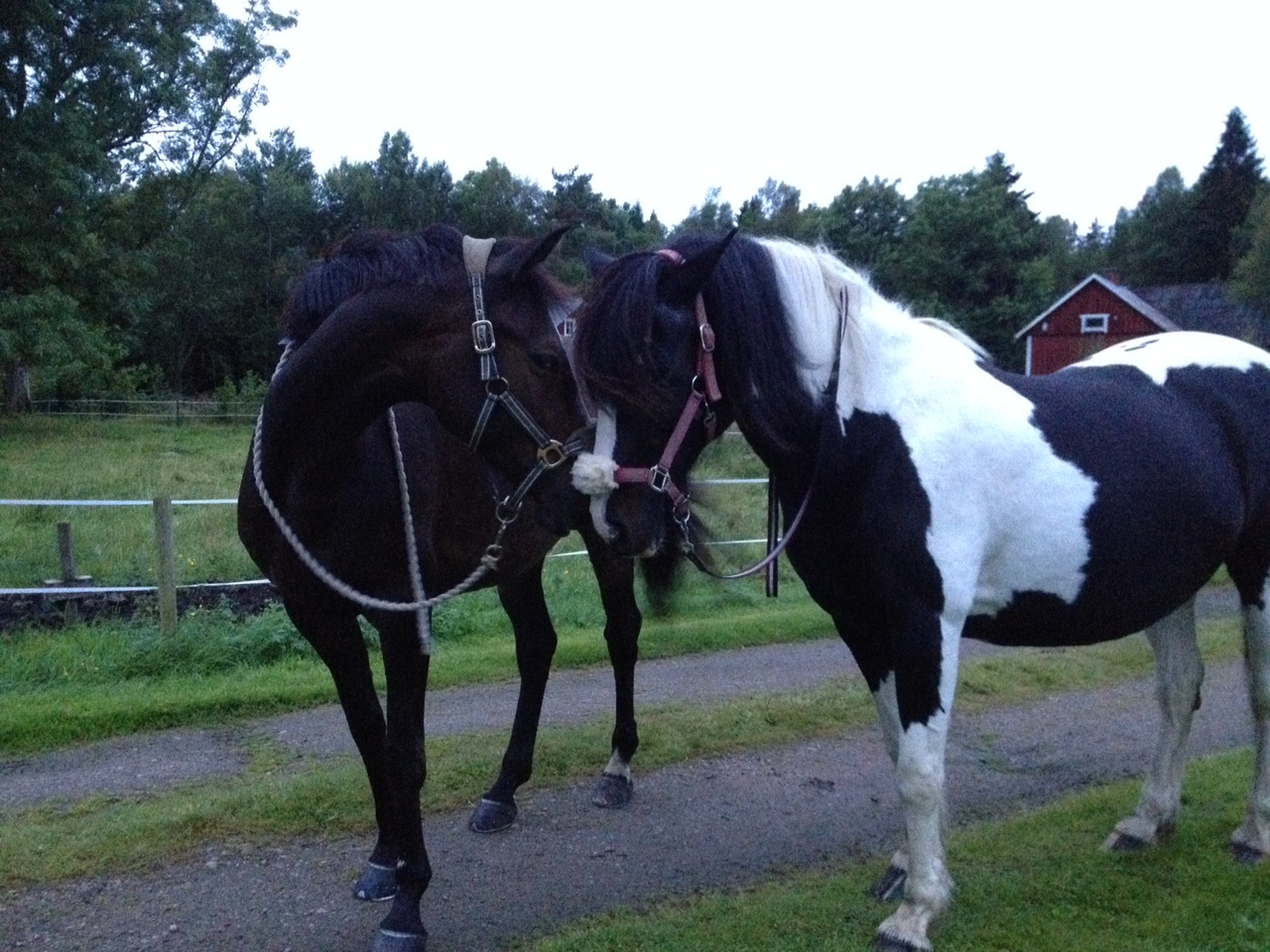 Vid halv åtta-tiden var jag hemma och passande nog var även Axel sen hem så jag kunde gå ut till hästarna i godan ro och pyssla lite med dem. Vi tog en promenad, hästarna och jag, och hade det ganska trevligt tillsammans. =)