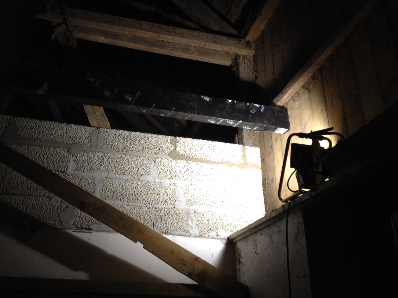 Ja lite smått löjligt blev det ju sist vi murade när bruket tog slut när vi hade ett block och lite till kvar. Idag köpte Axel en till säck murbruk och nu ikväll har vi satt det sista på den här väggen i alla fall! (Sadelkammaren ska ju också muras upp så småningom).