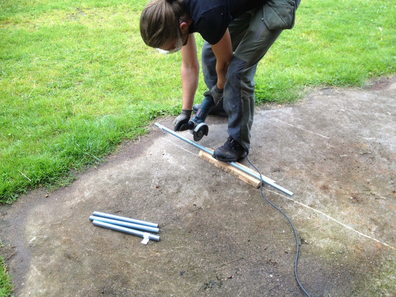 Sen har vi kapat stängerna som ska stickas genom hålet: