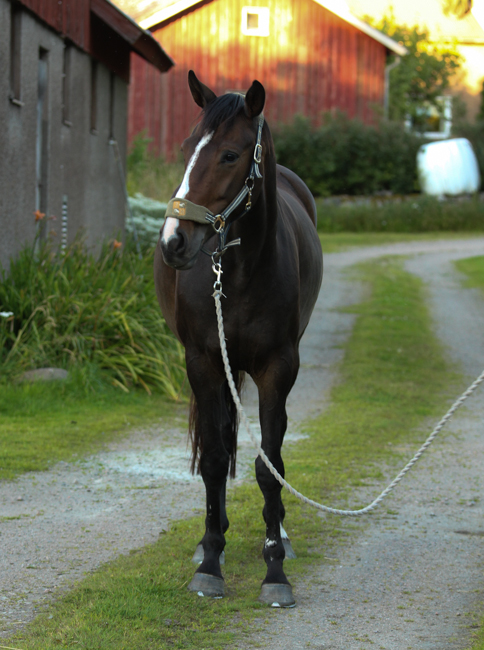 Jag är inte helt nöjd med dagens dressyrträning, men jag är heller inte missnöjd. Fokuset på dagens träning var på att saker och ting ska ske på sin plats och jag fick rida lite programdelar. Just det här med att saker ska ske på sin plats är något som jag inte har tänkt så mycket på förut. När man rider unghäst är det ju oftare så att man vill ha hästen i rätt läge så att säga innan man exempelvis fattar galopp, gör en skrittövergång eller en halt. Idag tränade vi på ”motsatsen” vilket var väldigt ovant och då också ganska svårt, men nyttigt såklart och nödvändigt eftersom jag nån gång vill starta Kaprifol i dressyr.