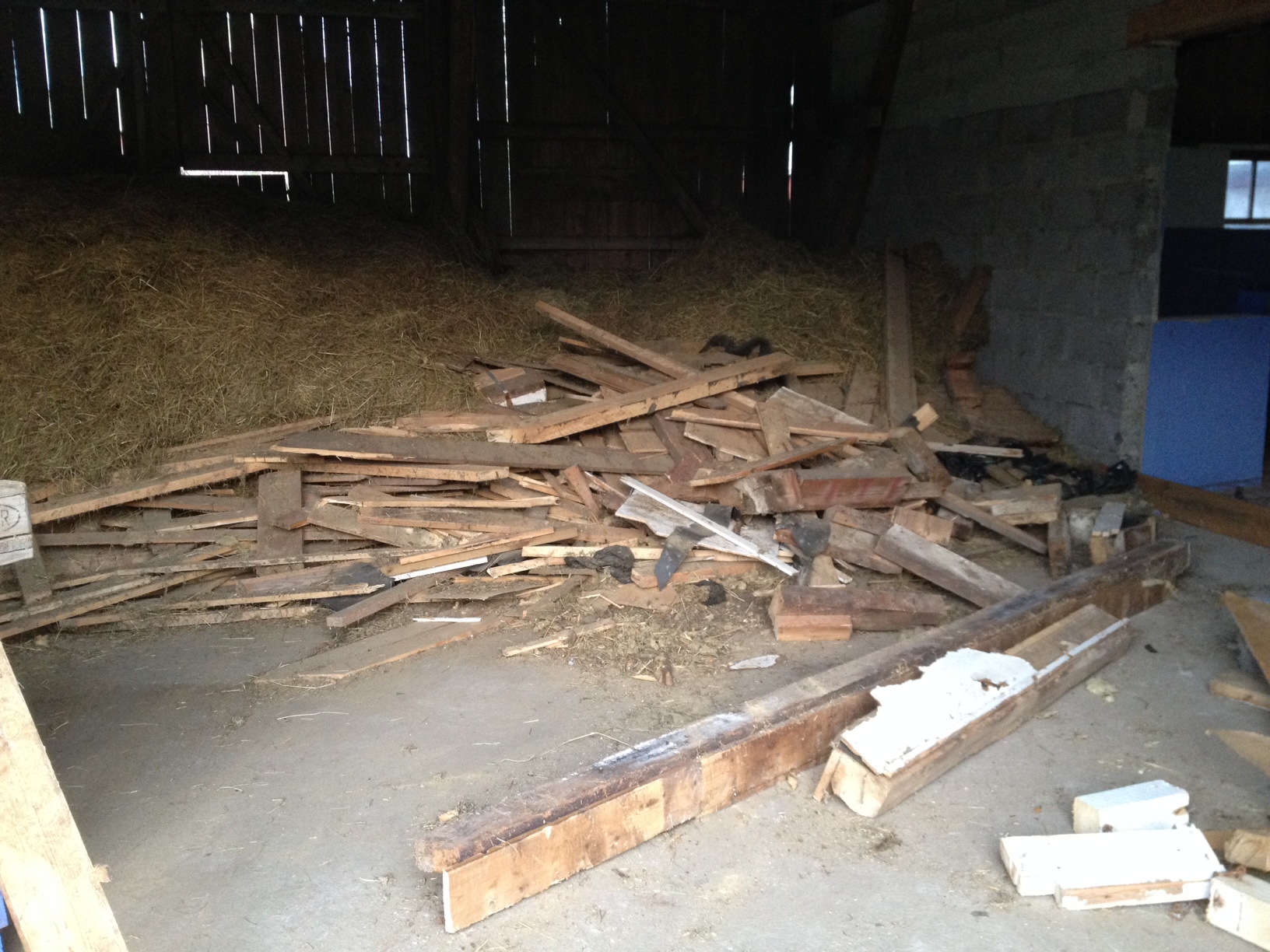 Vi körde en kortis med motorsågen även idag och det ser ungefär ut såhär vid brädhögen i dagsläget. Jag hann sortera lite efter att bilden togs, och slänga lite skräp men i stort sett i alla fall. Så visst har den minskat! Men en del kvar…